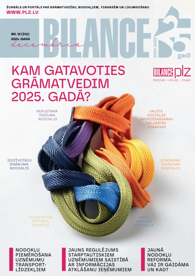 Profesionāls žurnāls par grāmatvedību, nodokļiem, tiesībām un uzņēmējdarbību. Skaidrojoši, praktiski un analītiski nozares ekspertu sagatavoti raksti.